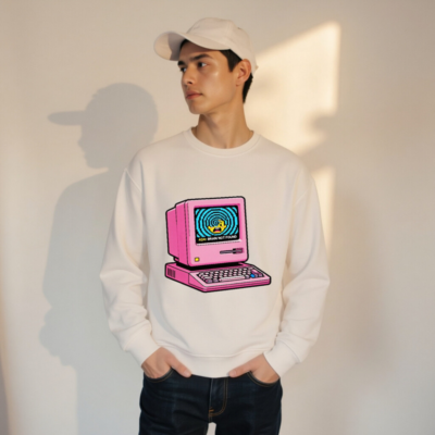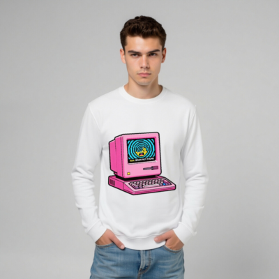 Pink Retro Computer Sweatshirt | Unisex Organic Cotton Crewneck