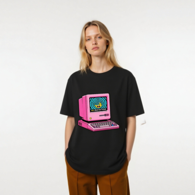 Pink Retro Computer T-Shirt | 404 Brain Not Found Error | Unisex Organic Cotton