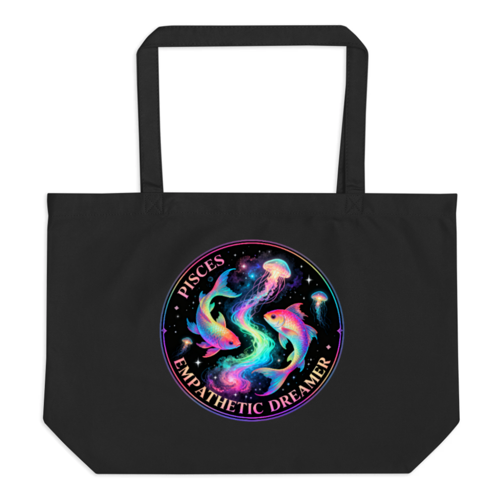 Pisces Empathetic Dreamer Organic Tote Bag | Large Black Eco-Friendly Canvas Tote