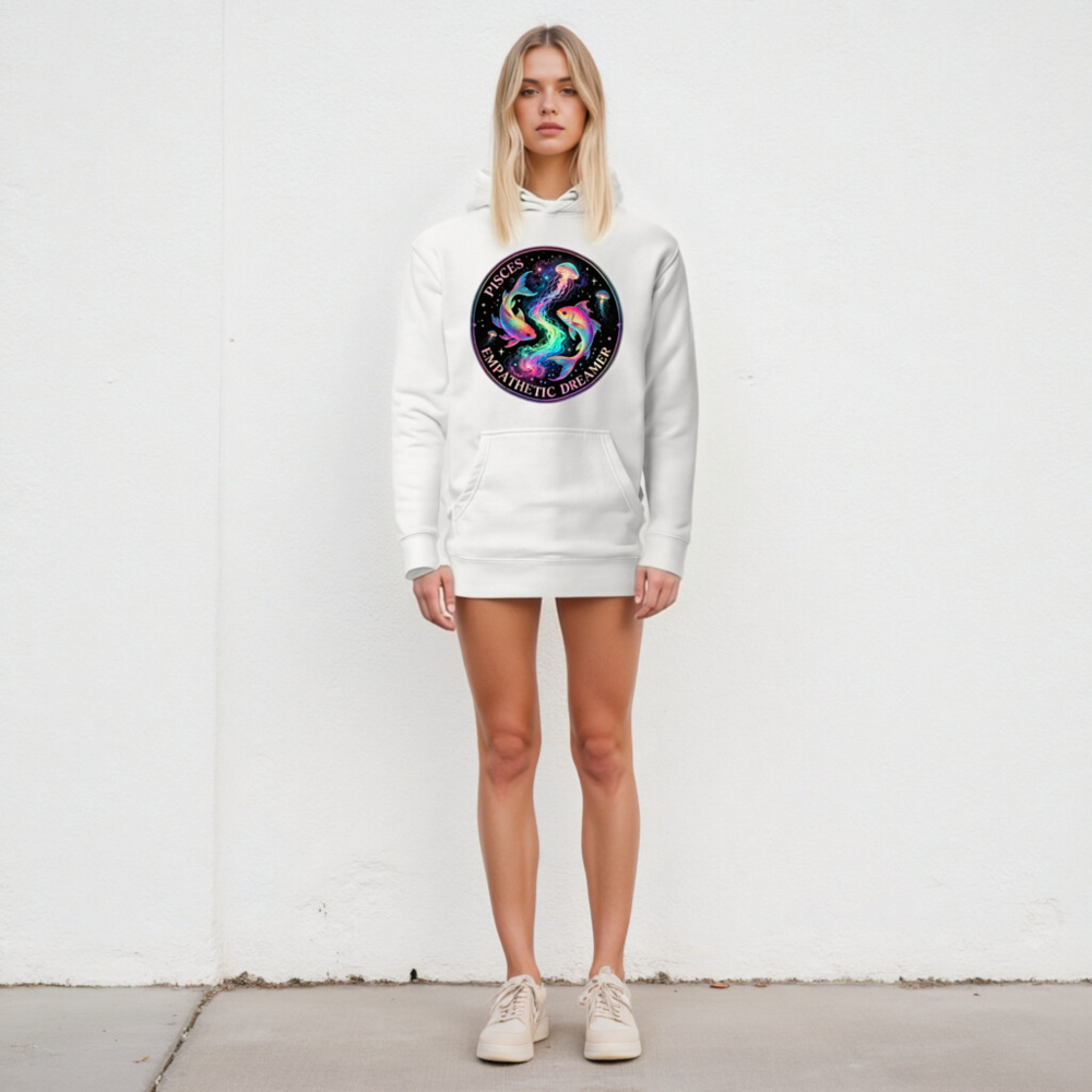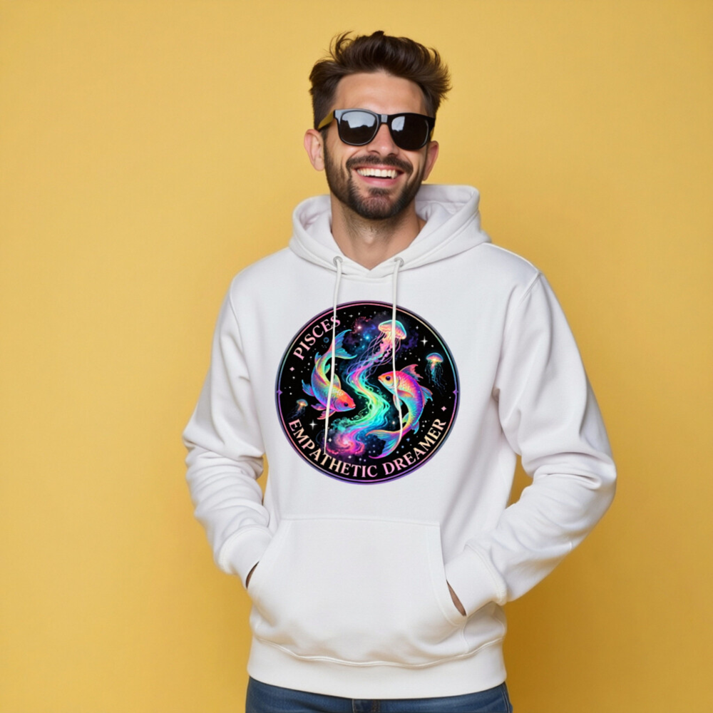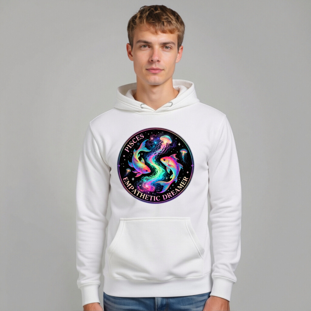 Pisces Empathetic Dreamer Unisex Hoodie – Cosmic Fish & Jellyfish Design