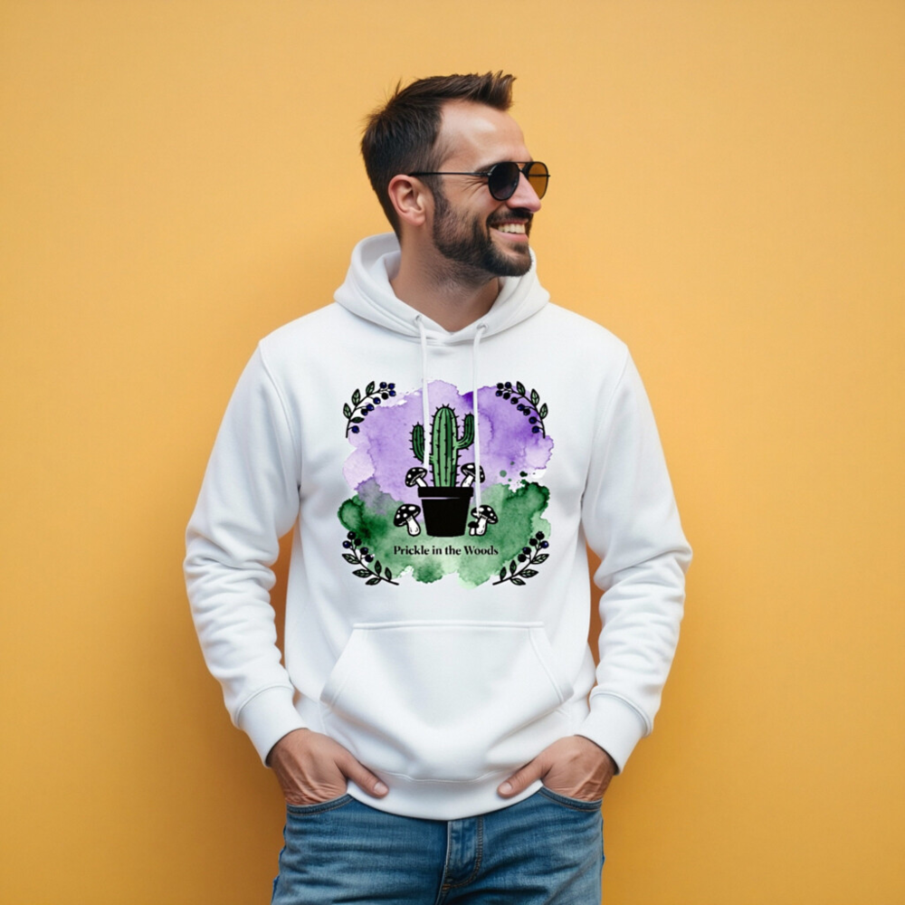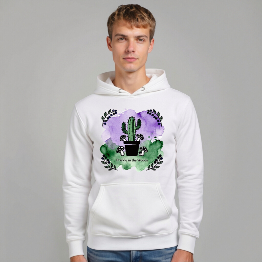 Prickle in the Woods Unisex Premium Pullover Hoodie | Cactus & Mushrooms Watercolor Design