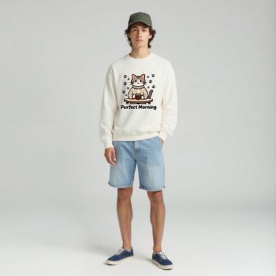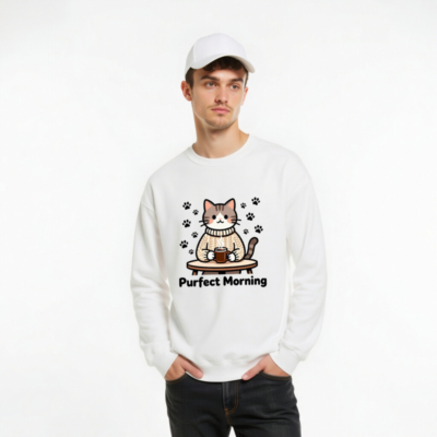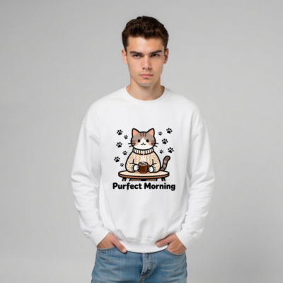 Chill with this cozy unisex crew neck sweatshirt featuring a charming cat in a knit sweater sipping steaming coffee, surrounded by paw prints. Soft, comfortable, and perfect for morning routines or cat lovers. Designed for everyday wear — stylish, relaxed fit, and machine washable. Ideal gift for pet enthusiasts. #CatLover #MorningVibes