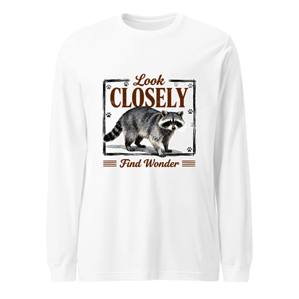 Raccoon Long Sleeve Tee – Look Closely Find Wonder Unisex Shirt