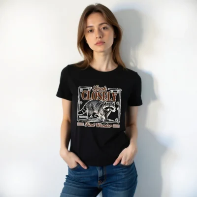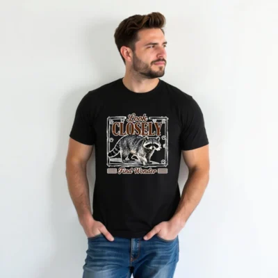 This unisex staple t-shirt features a charming raccoon illustration with the inspiring phrase ‘Look Closely, Find Wonder’—perfect for nature lovers and curious minds. Printed in high-quality, soft cotton for all-day comfort. Ideal for casual wear, outdoor adventures, or gifting. The vintage-style design combines whimsy and wisdom, making it a standout piece for adults who appreciate wildlife and thoughtful messaging. Machine washable and durable, this tee blends style, comfort, and meaning—wear your wonder proudly.