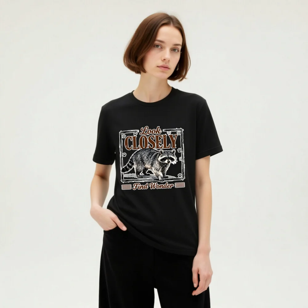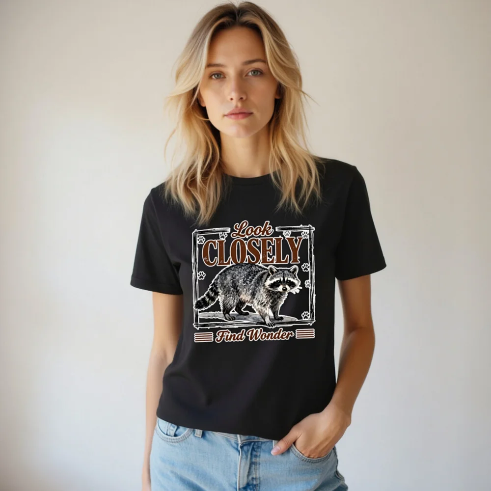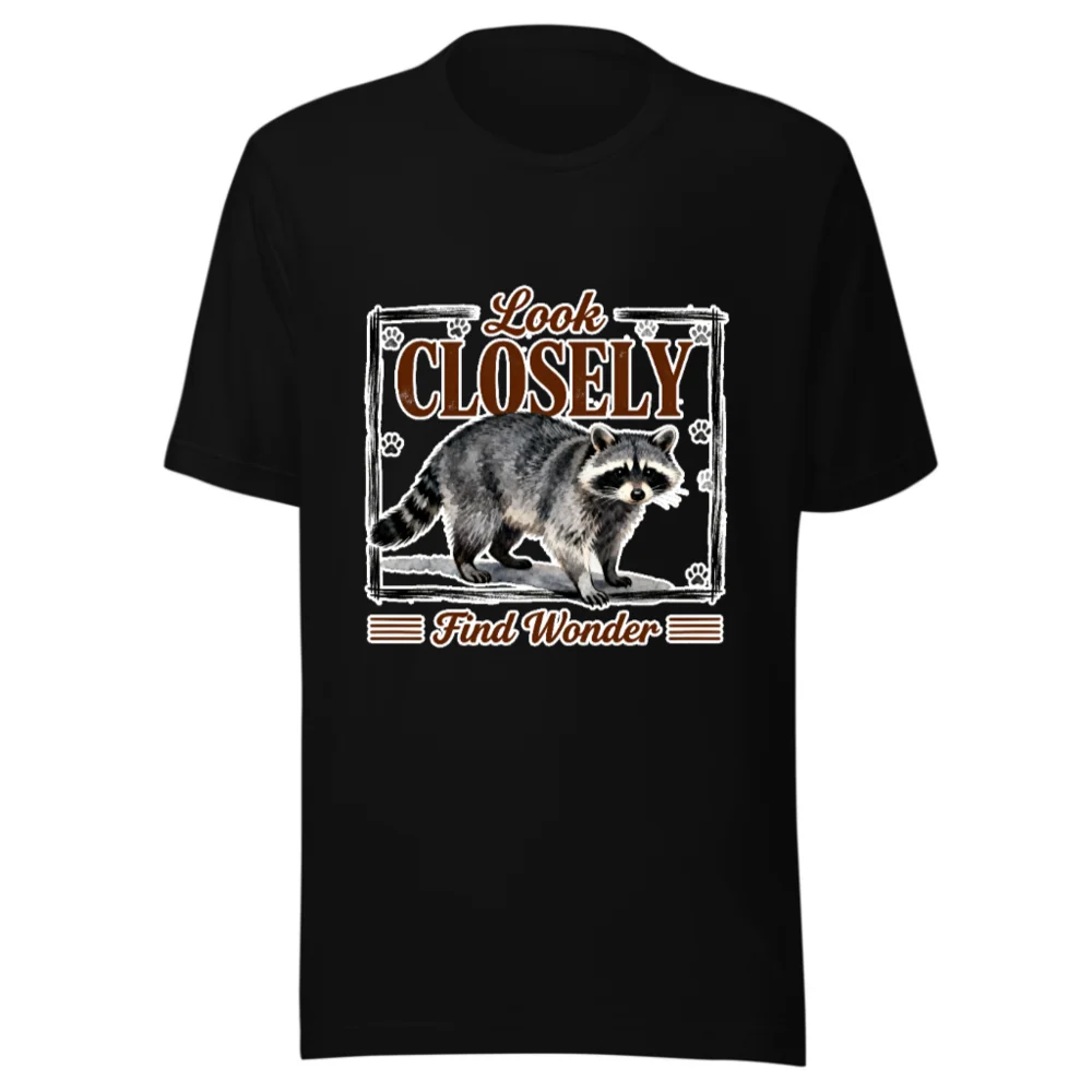 Raccoon ‘Look Closely Find Wonder’ Unisex Graphic T-Shirt