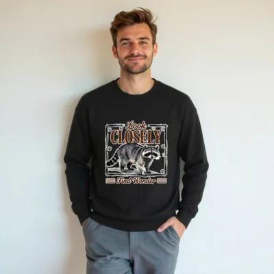 Raccoon Sweatshirt Unisex Crew Neck – Look Closely Find Wonder