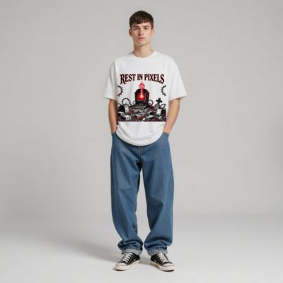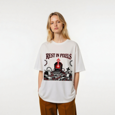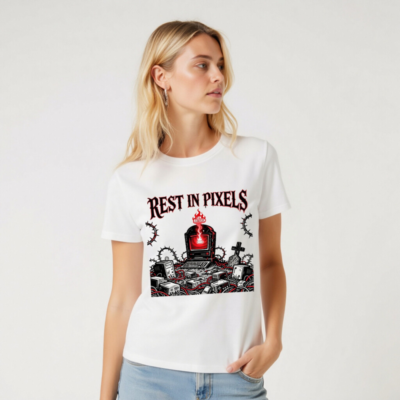 Rest in Pixels T-Shirt | Unisex Organic Cotton Tee with Gothic Tech Graveyard Design
