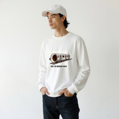 A playful unisex long sleeve tee featuring a coffee cup train on tracks with the slogan ‘RIDE THE MORNING BREW’. Perfect for coffee lovers and transit enthusiasts. Soft, comfortable cotton blend. Designed for daily wear—start your day with a smile. Ideal gift for commuters and barista fans.