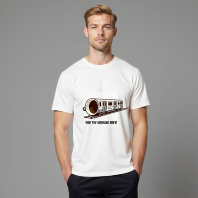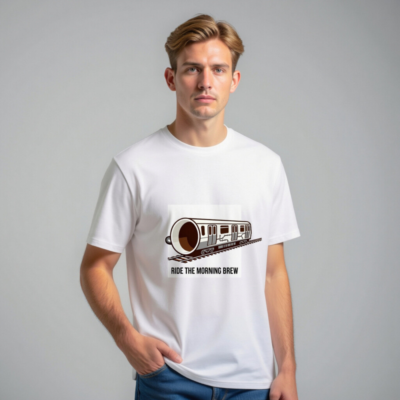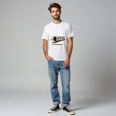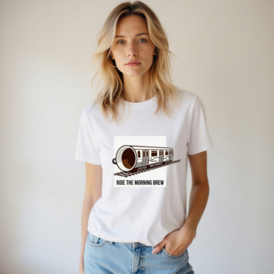 This unisex organic cotton t-shirt features a playful ‘Ride the Morning Brew’ design—where a coffee cup transforms into a train on tracks. Crafted for comfort and sustainability, it’s made from certified organic cotton (no additional certifications listed beyond what’s provided). Ideal for coffee lovers seeking a fun, everyday style with eco-conscious materials.