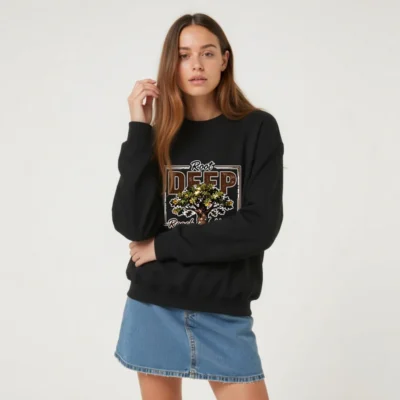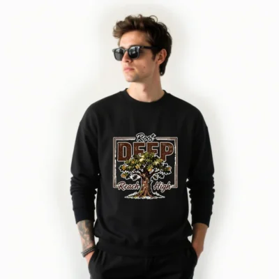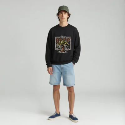 - Double-needle stitched collar, shoulders, armholes, cuffs, and hem