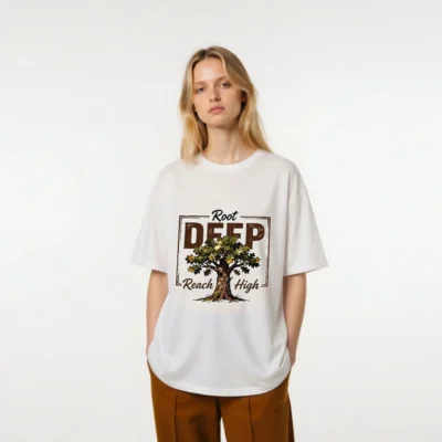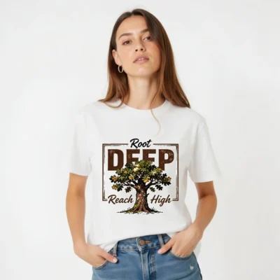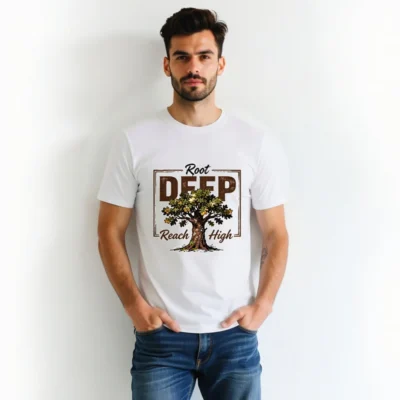 This eco-friendly unisex t-shirt is crafted from 100% organic cotton for soft comfort and sustainability. Featuring the inspiring ‘Root Deep, Reach High’ tree graphic—symbolizing strength, growth, and resilience—it’s perfect for nature lovers and mindful wearers. Designed with a classic fit, it suits everyday wear, outdoor adventures, or casual layering. Ideal for men and women seeking meaningful, planet-conscious fashion. Durable print, OEKO-TEX® certified dyes, and ethical production ensure quality you can trust.