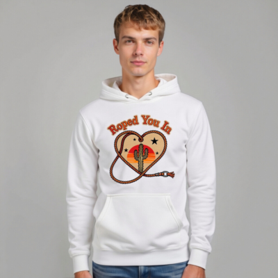 This unisex premium pullover hoodie features a vintage western design: a rope-formed heart enclosing a saguaro cactus against a sunset backdrop with stars. Soft, comfortable, and stylish—perfect for desert lovers and cowboy-chic fans. Crafted for everyday wear with durable fabric and classic fit. Ideal gift for rodeo enthusiasts or anyone who’s ‘rope-y’ in love.