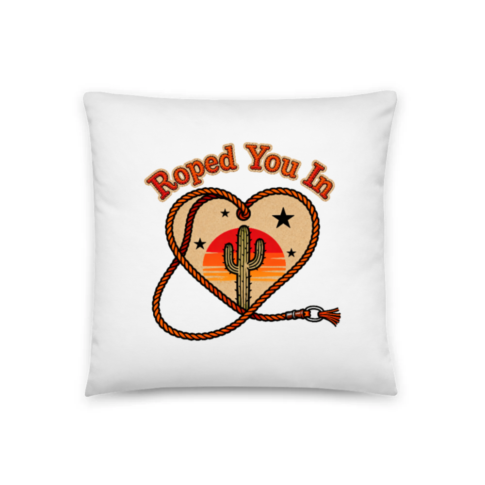 Roped You In Heart Pillow – Western Cactus Sunset Design, 18×18″ Decorative Throw Pillow
