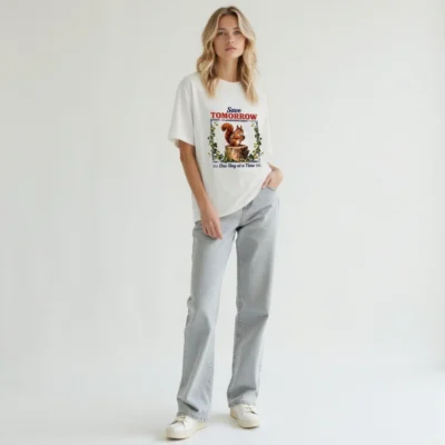 Eco-conscious style meets playful activism with this unisex organic cotton t-shirt. Featuring a charming squirrel on a tree stump framed by ivy and the inspiring message ‘Save Tomorrow — One Day at a Time’, it’s perfect for nature lovers and sustainability advocates. Made from soft, breathable 100% organic cotton, this tee offers comfort and durability. Ideal for casual wear, outdoor adventures, or gifting. Fairly produced, eco-friendly, and designed to spark conversation about environmental care—wear your values proudly, one day at a time.