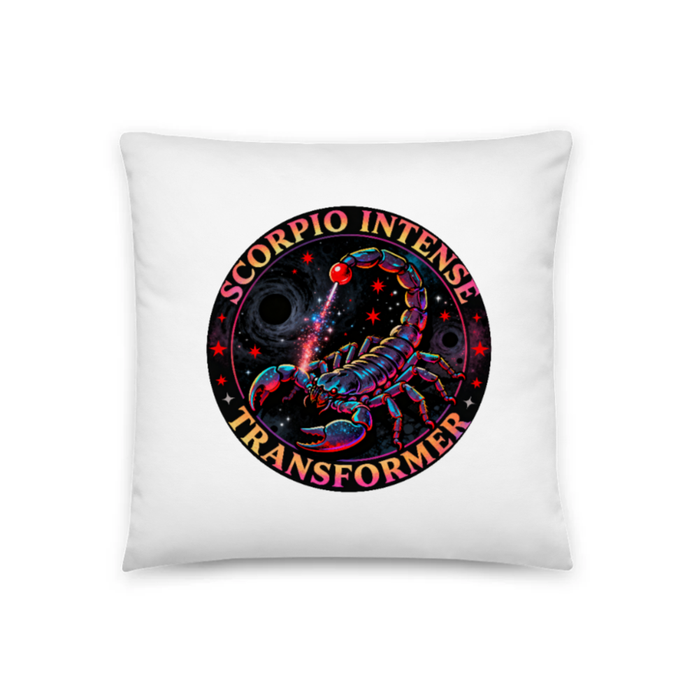 Celebrate Scorpio energy with this 18″x18″ basic pillow featuring a vibrant cosmic scorpion design. The ‘Scorpio Intense Transformer’ motif blends zodiac symbolism with retro-futuristic art—neon-hued scorpion, starry nebula, black holes, and radiant beam. Ideal for astrology lovers, space enthusiasts, or anyone seeking bold decor. Soft, standard square pillowcase; no embellishments or certifications claimed beyond product description.