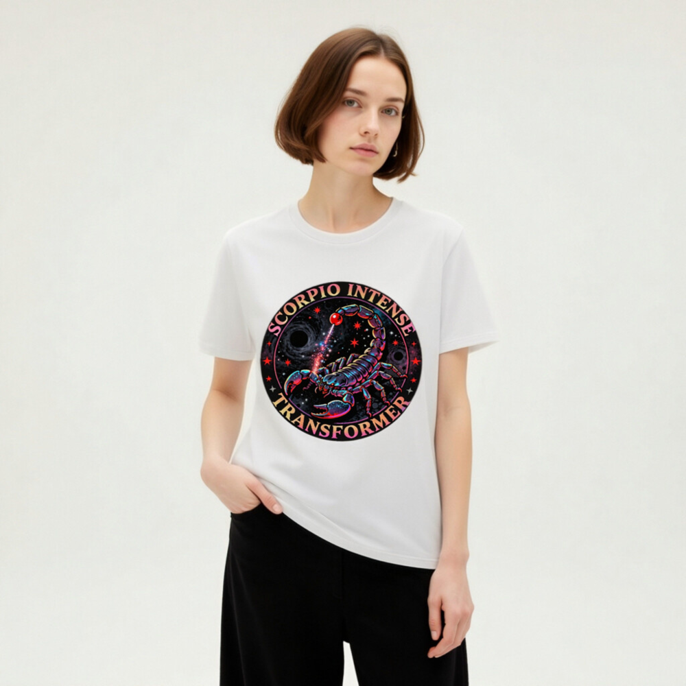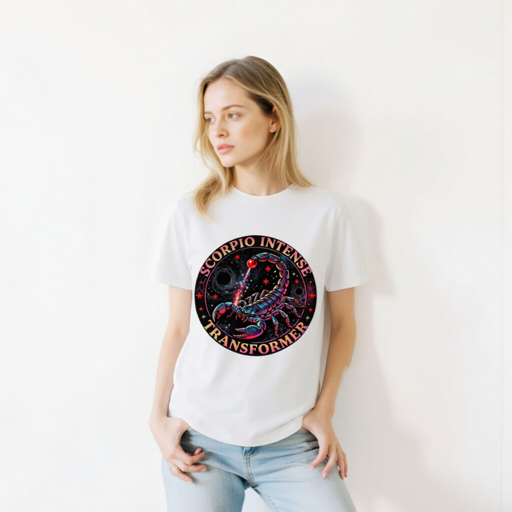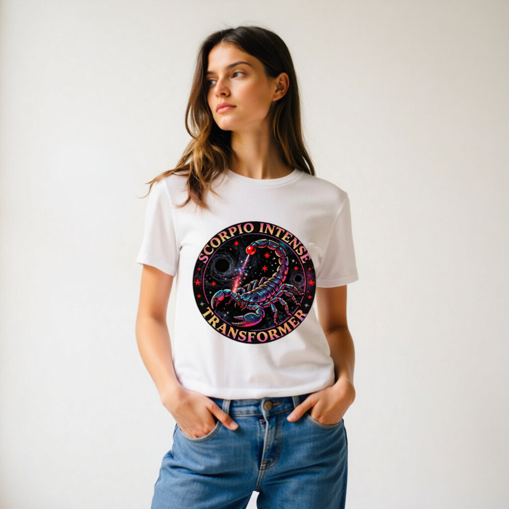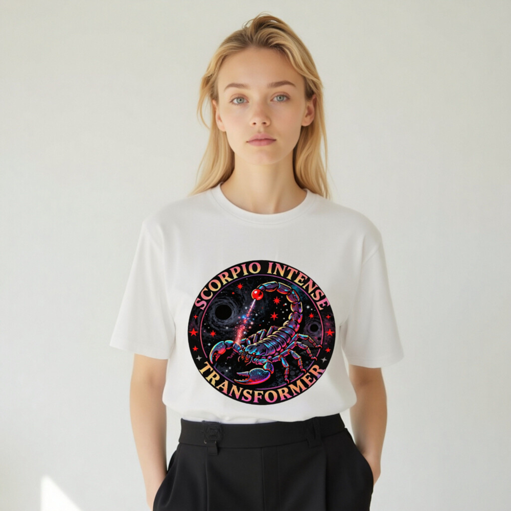 Wear the cosmic power of Scorpio with this vibrant, unisex organic cotton t-shirt. Featuring a vivid neon scorpion design against a starry black hole backdrop, the ‘Scorpio Intense Transformer’ graphic radiates intensity and mystique. Crafted for comfort and sustainability, this eco-friendly tee blends astrological symbolism with bold streetwear style—perfect for zodiac lovers and cosmic enthusiasts.