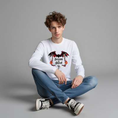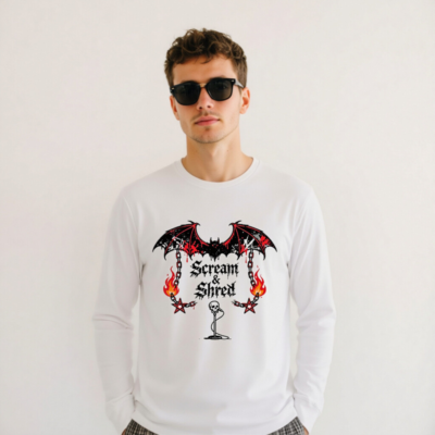 Scream & Shred Bat Wings Long Sleeve Tee – Unisex Gothic Punk Shirt