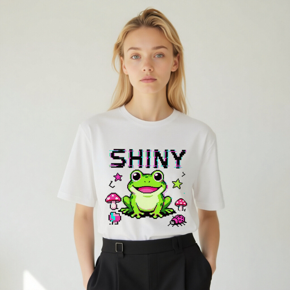 Shiny Frog Pixel Art Unisex T-Shirt – Retro Gaming Design