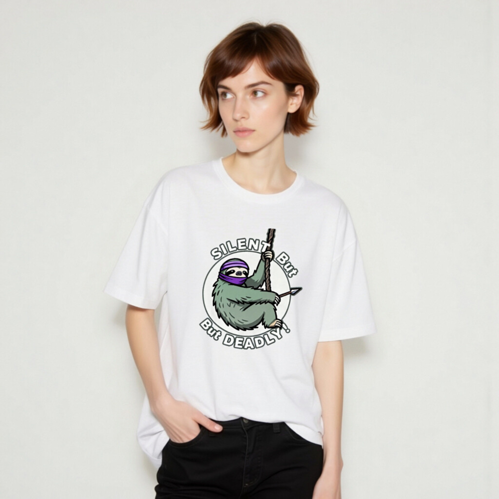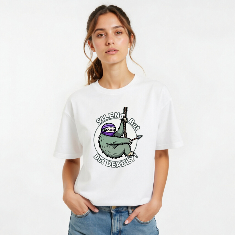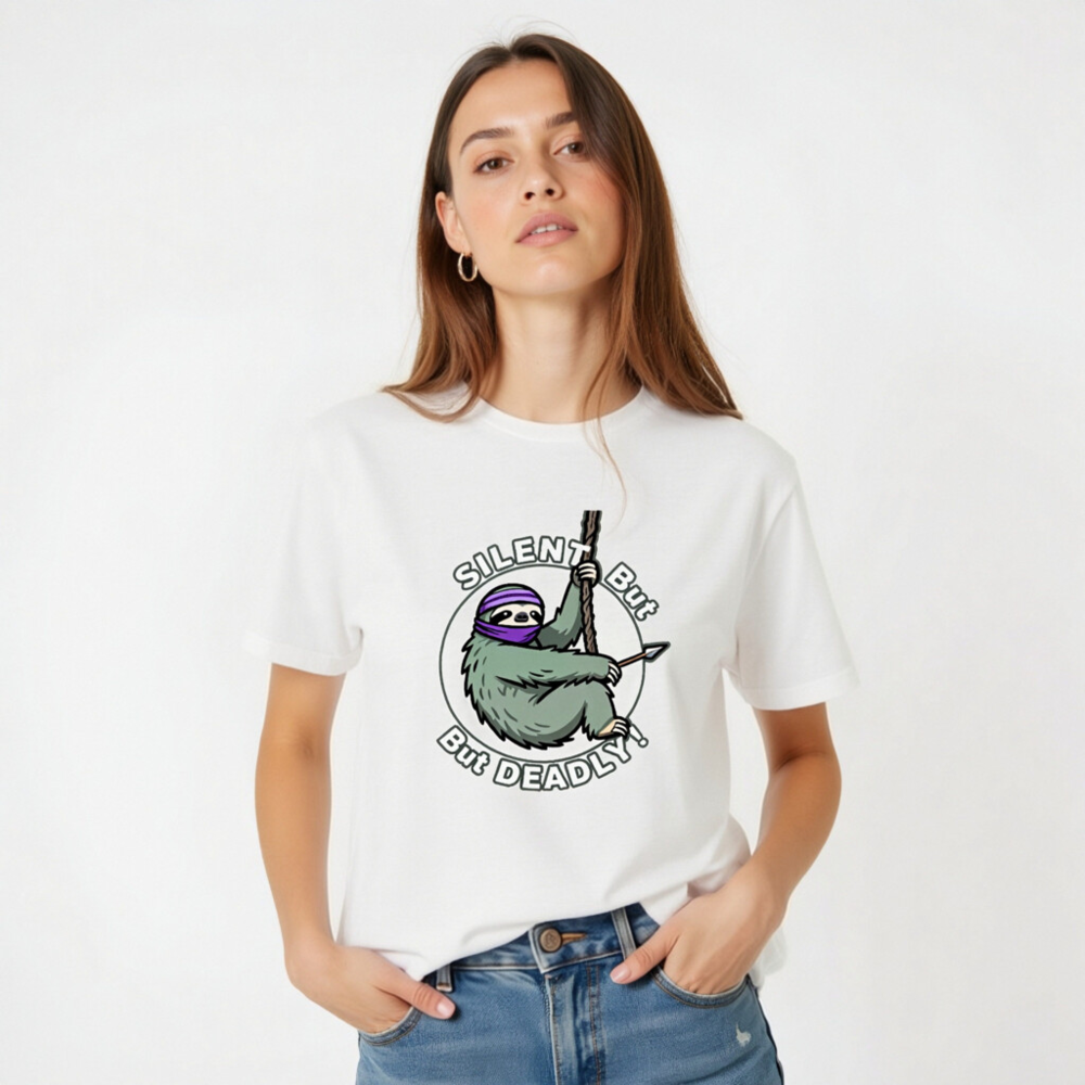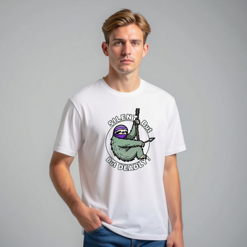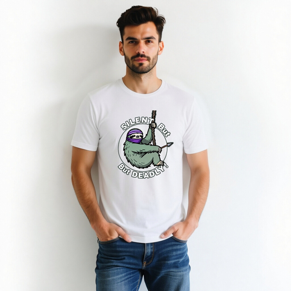 Silent But Deadly Sloth T-Shirt – Unisex Staple Tee with Ninja Sloth Graphic
