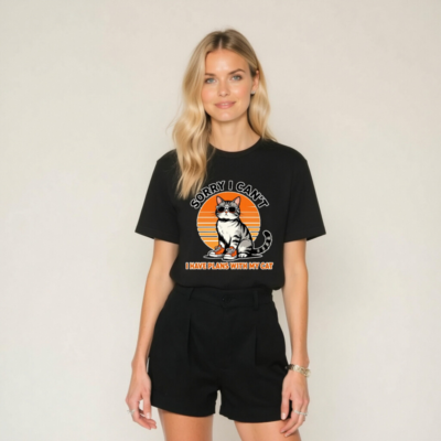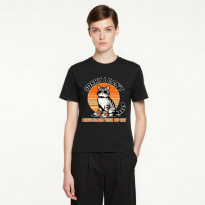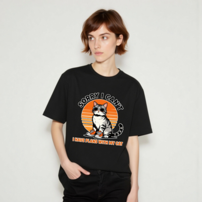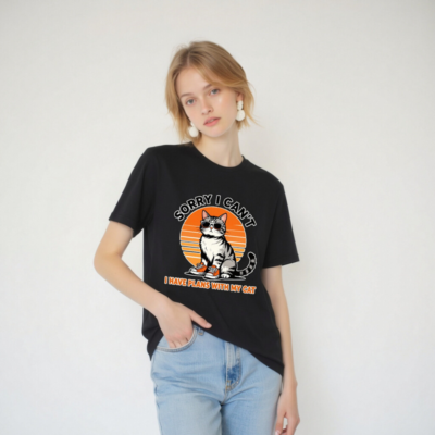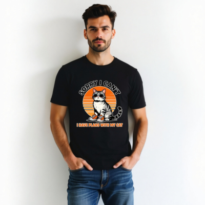 Sorry I Can’t I Have Plans With My Cat Unisex T-Shirt – Vintage Cat Graphic Tee