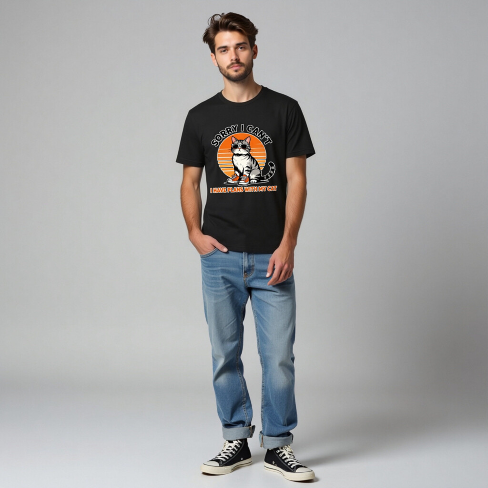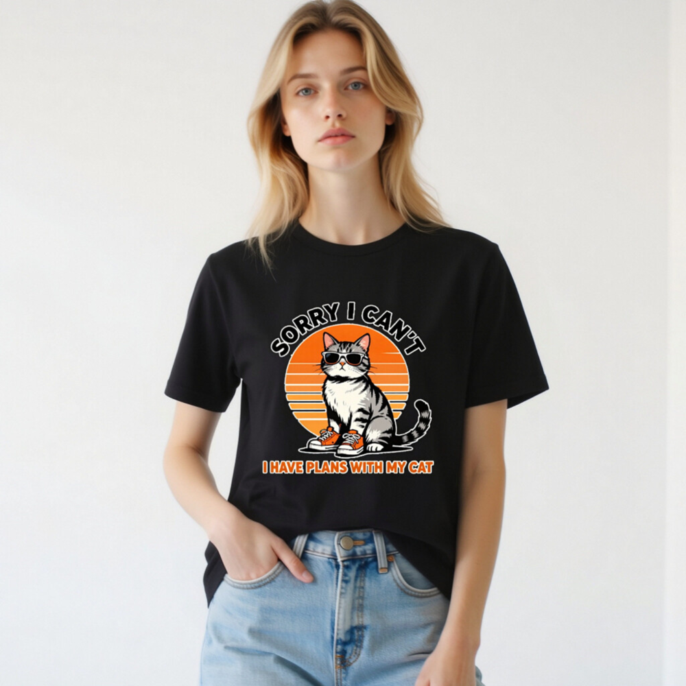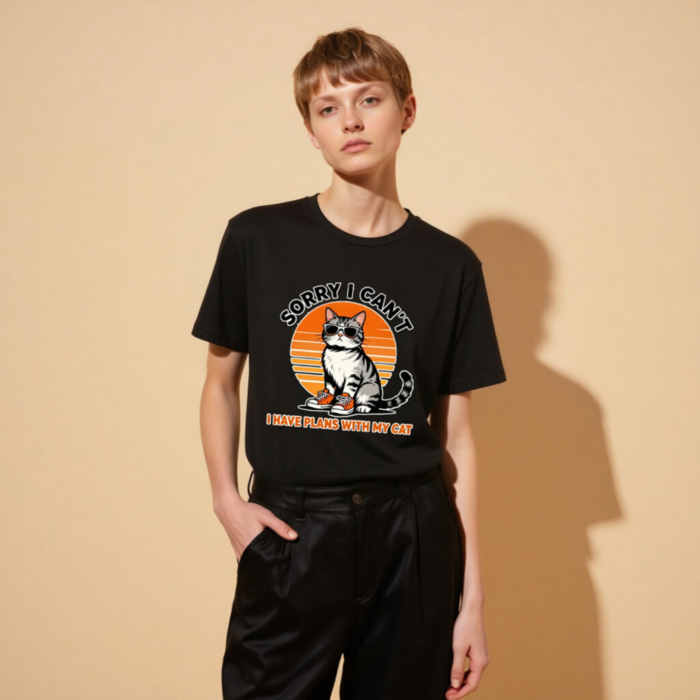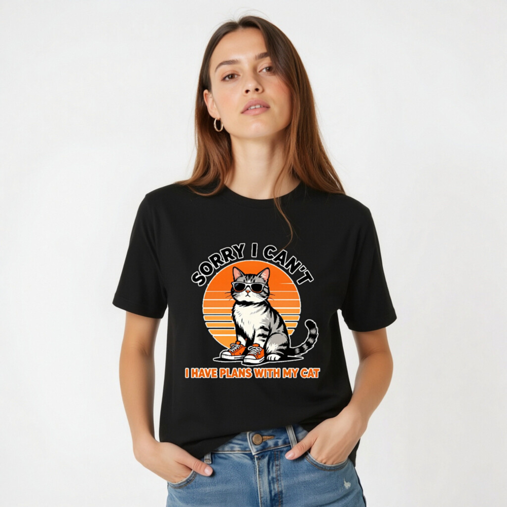 Sorry I Can’t I Have Plans With My Cat Unisex T-Shirt – Vintage Cat Graphic Tee