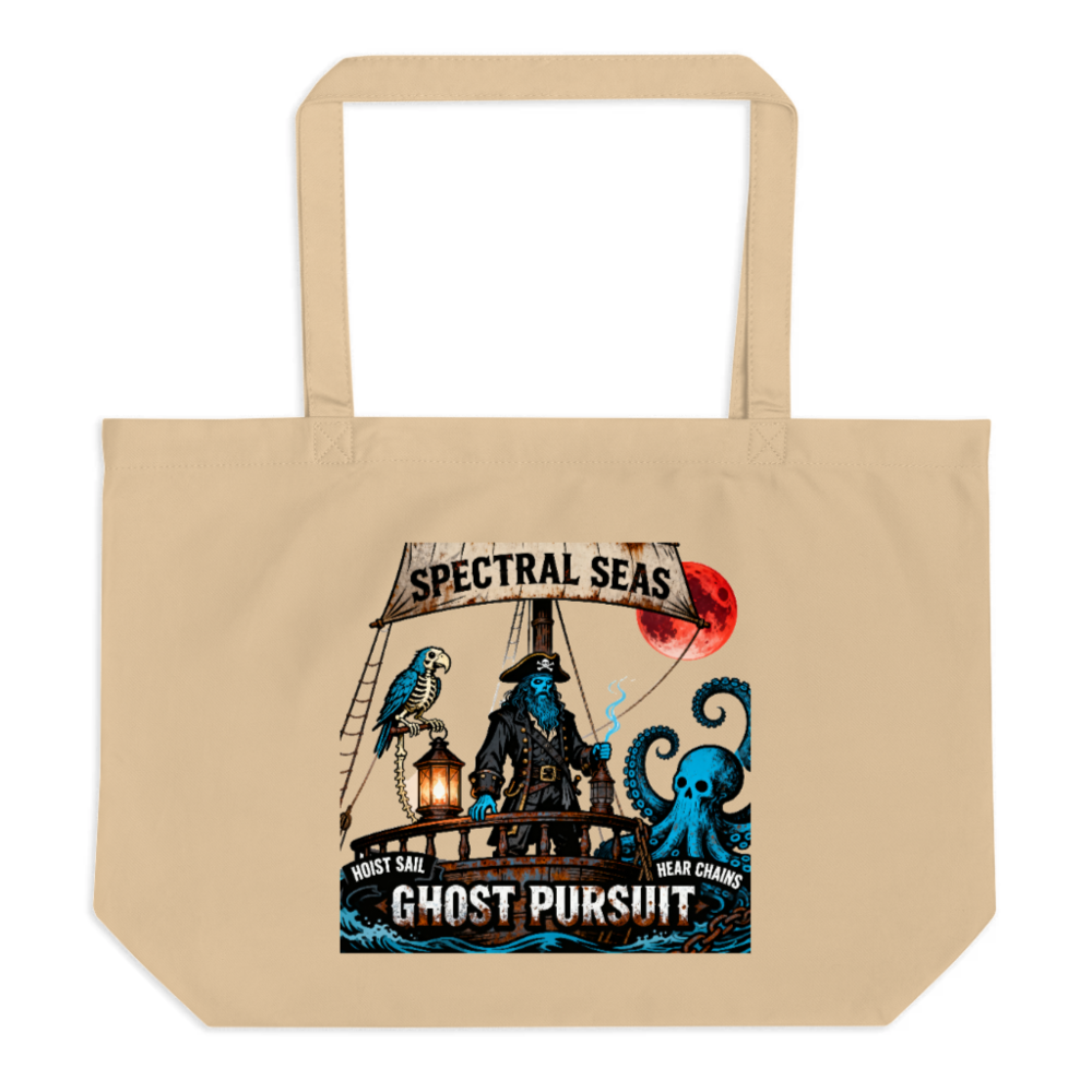 Spectral Seas Ghost Pursuit Organic Tote Bag | Eco-Friendly Large Canvas Bag