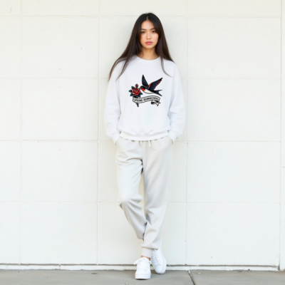 Spring Reawakening Sweatshirt – Unisex Crew Neck, Vintage Bird & Rose Tattoo Design
