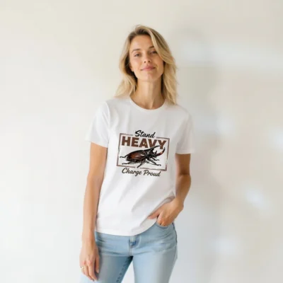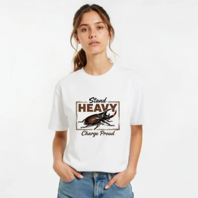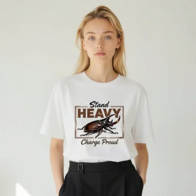 Bold and unapologetic, this unisex staple t-shirt features a striking rhinoceros beetle graphic with the empowering slogan ‘Stand Heavy, Charge Proud’. Printed on soft, premium cotton for all-day comfort. Perfect for insect lovers, nature enthusiasts, or anyone who embraces strength and individuality. Ideal for casual wear, outdoor adventures, or as a unique gift. Machine washable, durable print, and true-to-size fit ensure long-lasting style. A statement piece that combines entomology-inspired art with motivational messaging—wear your confidence proudly.