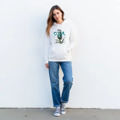 Thanks to its organic materials, the unisex essential eco hoodie is a great buy for eco-conscious fashion lovers. This comfortable regular fit hoodie has a double-layered hood, set-in sleeves, and a front pouch pocket.
