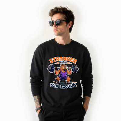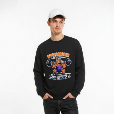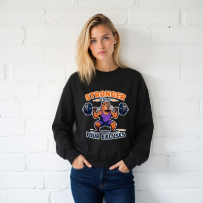 This unisex crew neck sweatshirt features a bold, motivational design: a muscular capybara in a purple tank top lifting weights with the phrase ‘STRONGER Than YOUR EXCUSES’—perfect for gym lovers, fitness enthusiasts, and anyone who embraces resilience. Made from soft, durable fabric, it’s ideal for workouts, casual wear, or as a humorous gift. The eye-catching graphic combines humor and inspiration—strong SEO keywords include ‘gym sweatshirt’, ‘capybara workout’, ‘motivational apparel’, ‘unisex crew neck’.