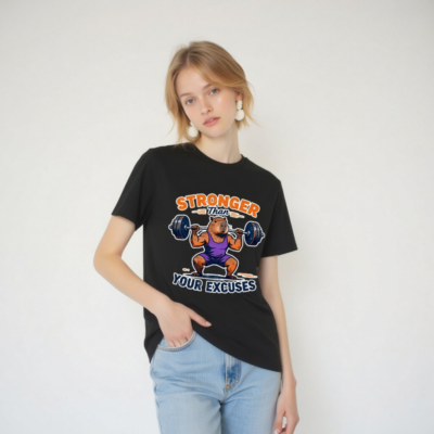Show your workout spirit with this bold unisex organic cotton t-shirt featuring a fierce capybara lifting weights and the motivational phrase ‘Stronger Than Your Excuses’. Made from certified organic cotton for comfort and sustainability. Perfect for gym lovers, fitness enthusiasts, and anyone ready to crush their goals. Designed for all sizes—soft, durable, and eco-conscious.