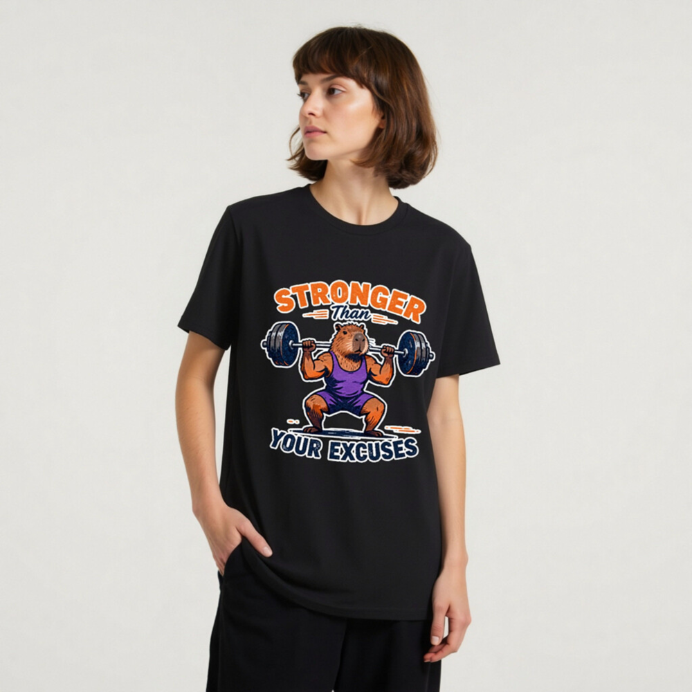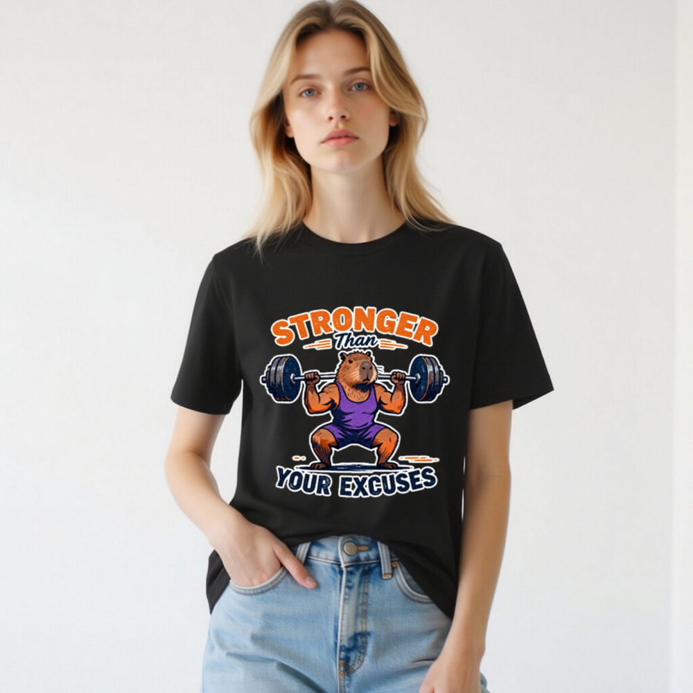 Stronger Than Your Excuses Capybara Gym T-Shirt | Unisex Organic Cotton