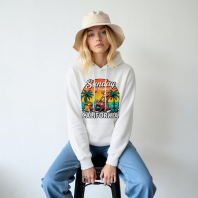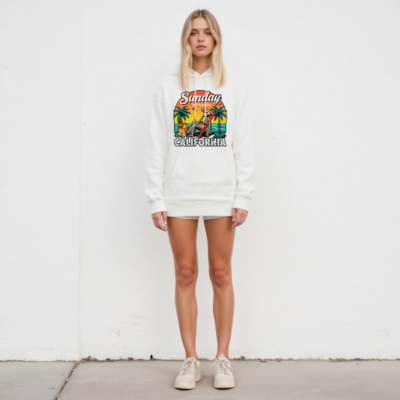 Relax like a skeleton in paradise with this unisex premium pullover hoodie. Features a vibrant ‘Sunday In Paradise’ graphic with a skeleton lounging on a beach chair, palm trees, sunset, and tropical fruits — perfect for California vibes. Soft, comfortable, and stylish. Ideal for casual wear or as a fun gift. Machine washable. Available in multiple sizes.