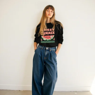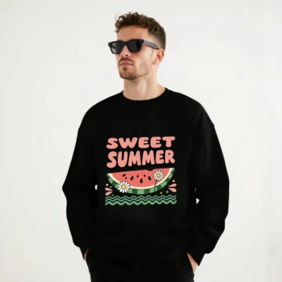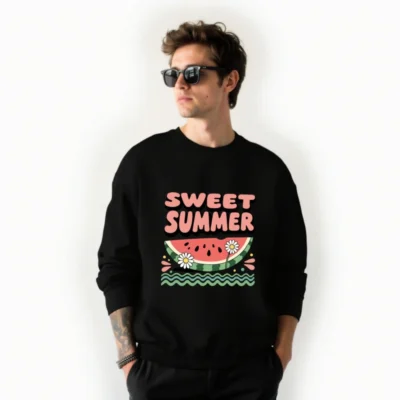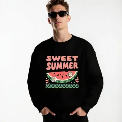 Chill in style with this unisex crew neck sweatshirt featuring a vibrant ‘Sweet Summer’ watermelon slice graphic, daisies, and wavy water—perfect for warm days. Soft fleece fabric, relaxed fit, versatile for casual wear. Ideal for summer lovers seeking comfort and fun design. Machine washable for easy care.