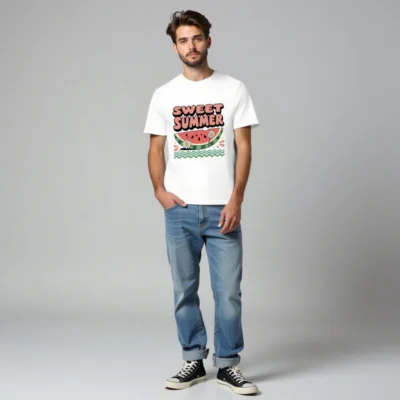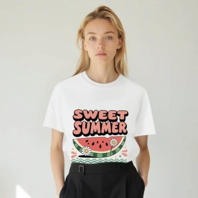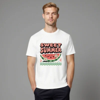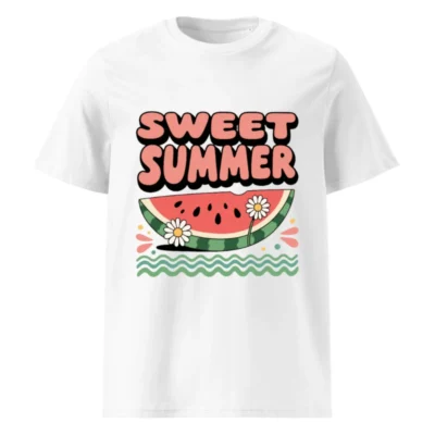Chill in style with this Sweet Summer watermelon slice tee—featuring daisies, wavy greens, and bold retro typography. Made from unisex organic cotton for comfort and sustainability. Perfect for sunny days, beach outings, or casual summer vibes. Soft, breathable, and eco-conscious—just like your favorite season.