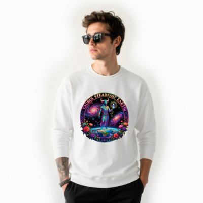 Taurus Steadfast Earth Unisex Crew Neck Sweatshirt – Cosmic Bull, Galaxy & Floral Design