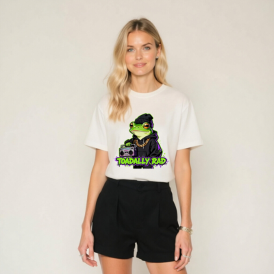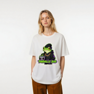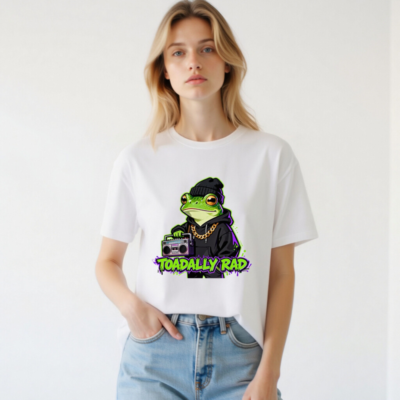 Toadally Rad Unisex T-Shirt – Green Frog with Boombox & Gold Chain, Streetwear Style