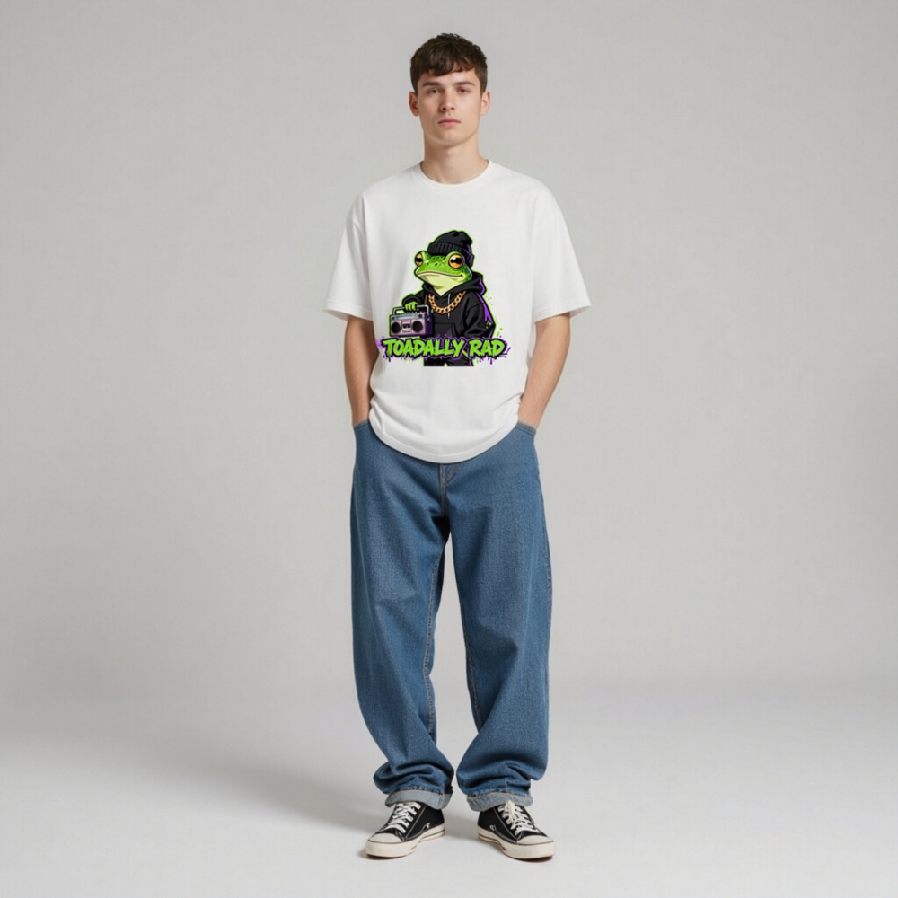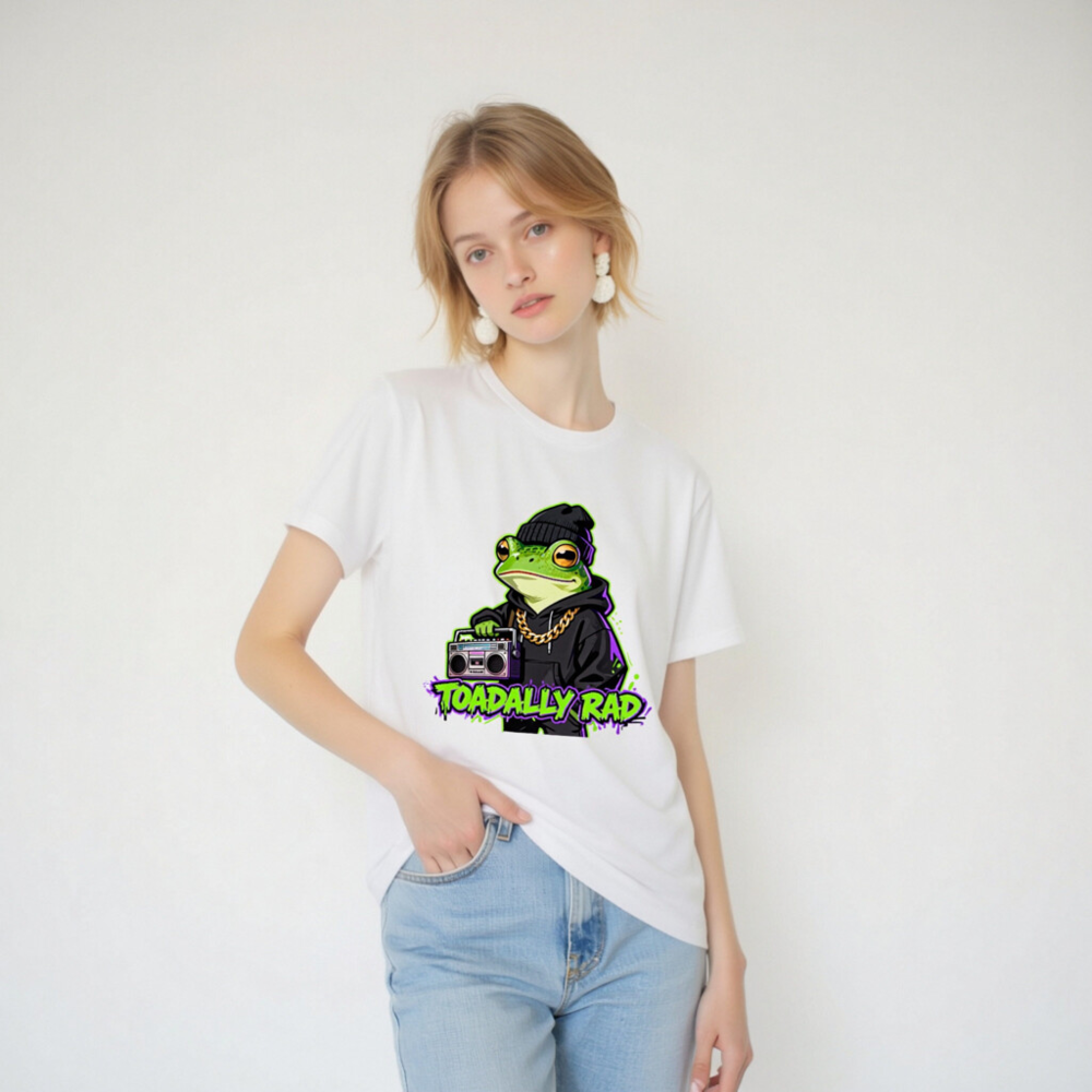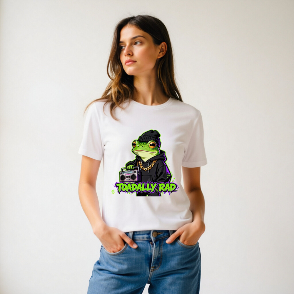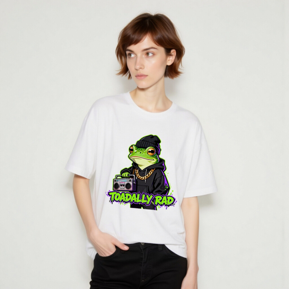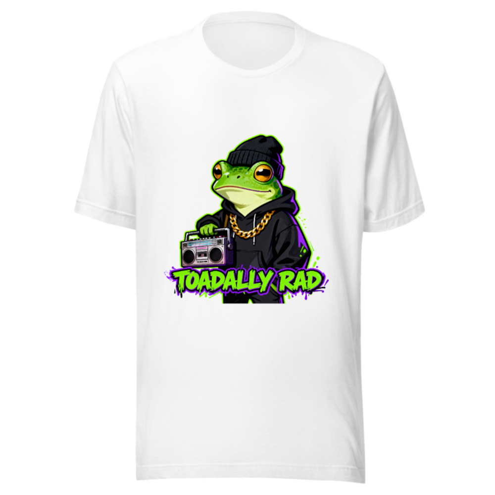 Toadally Rad Unisex T-Shirt – Green Frog with Boombox & Gold Chain, Streetwear Style