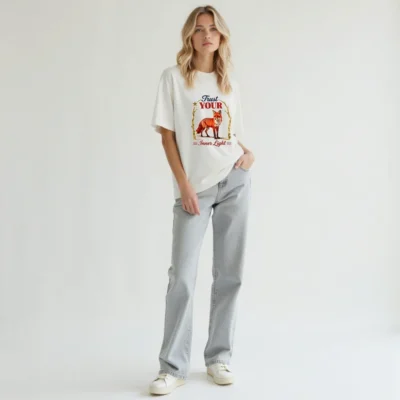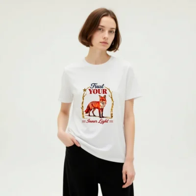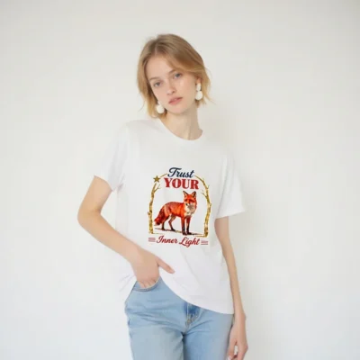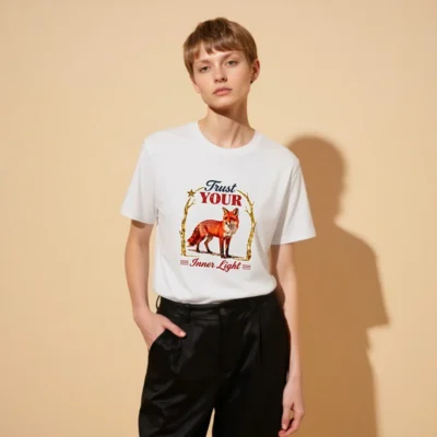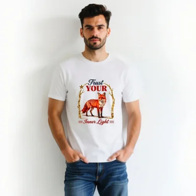 Wear the wisdom of the fox with this unisex organic cotton t-shirt. Featuring a vibrant red fox framed by golden branches and the inspiring phrase ‘Trust Your Inner Light’—a design that blends nature, symbolism, and mindful living. Soft, breathable, and ethically made for everyday comfort. Perfect for self-expression and conscious style.