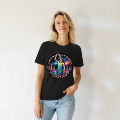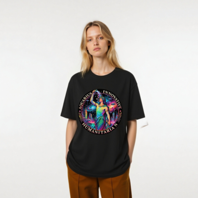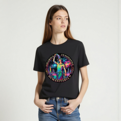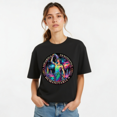 Unisex Aquarius T-Shirt – Innovative Humanitarian Mermaid Design, Neon Galaxy Print