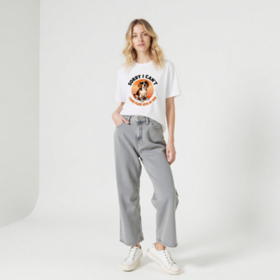 This unisex staple t-shirt features a fun, vintage-style graphic of a beagle wearing sunglasses and sneakers, set against a retro sunset. The playful slogan ‘Sorry I Can’t, I Have Plans With My Dog’ perfectly captures dog lovers’ hearts. Made for comfort and everyday wear, it’s ideal for pet enthusiasts seeking humor and style in one classic tee.