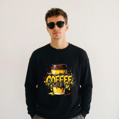 Show your caffeine love with this unisex crew neck sweatshirt featuring a vibrant, graffiti-style coffee cup graphic. The bold ‘COFFEE’ text drips with espresso accents over a yellow cup, perfect for coffee enthusiasts. Soft, comfortable fit—ideal for casual wear or gifting. Available in all sizes, one-size-fits-most design. No extra certifications claimed; product made to standard apparel quality.