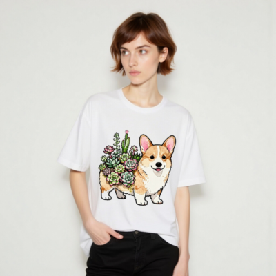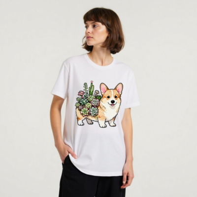 Unisex Corgi with Succulents T-Shirt | Watercolor Pet Design
