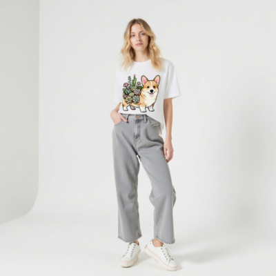 Adorable unisex staple t-shirt featuring a charming watercolor corgi surrounded by colorful succulents and small flowers. Soft, comfortable cotton blend for everyday wear. Perfect gift for plant lovers, dog enthusiasts, or anyone who loves cute pet art. Designed for universal fit—great for all genders. Simple, stylish, and joyful.