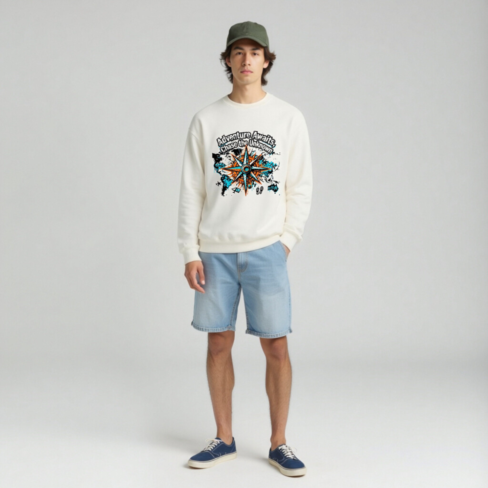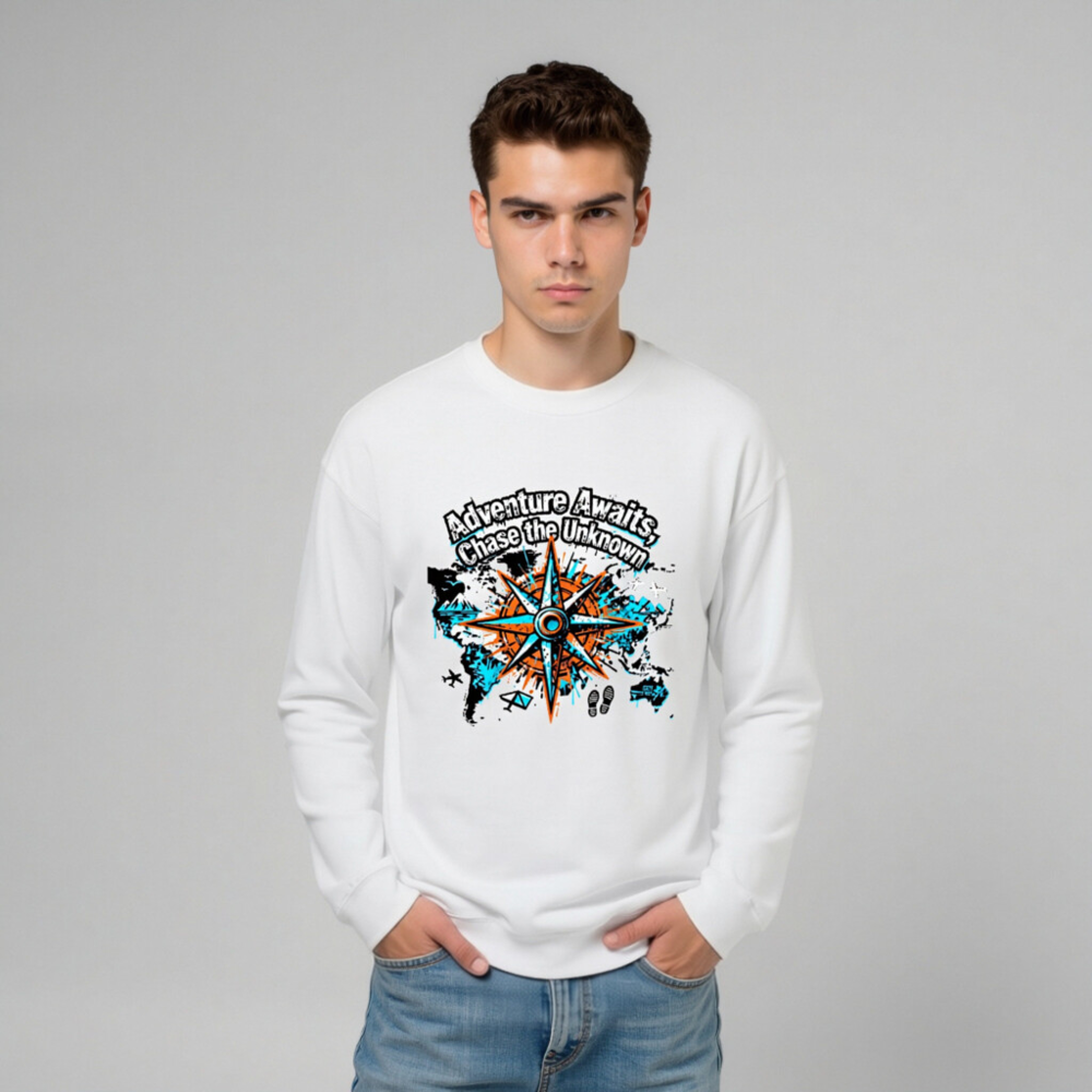 Unisex Crew Neck Sweatshirt | Adventure Awaits, Chase the Unknown Compass Design