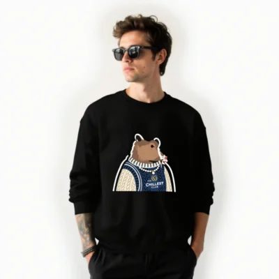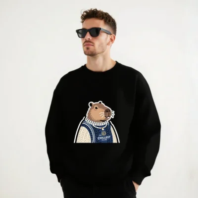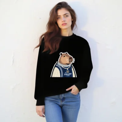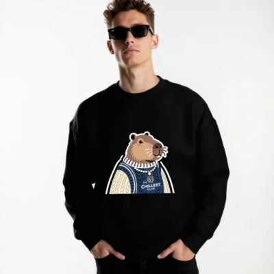 Unisex Crew Neck Sweatshirt – Capybara ‘The Chillest Club’ Graphic, Cozy Knit Style