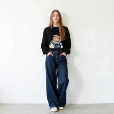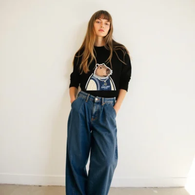 This unisex crew neck sweatshirt features a charming capybara in a cozy blue and cream knit sweater, adorned with a pearl necklace and the playful ‘The Chillest Club’ logo. Crafted for comfort with soft fabric and relaxed fit, it’s perfect for casual wear or as a fun statement piece. Ideal for fans of quirky animal designs and laid-back style.
