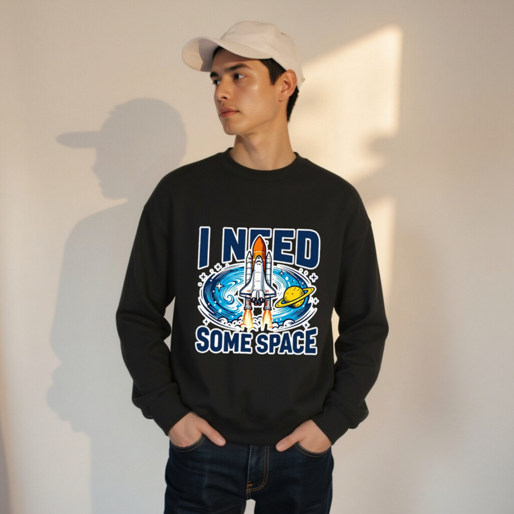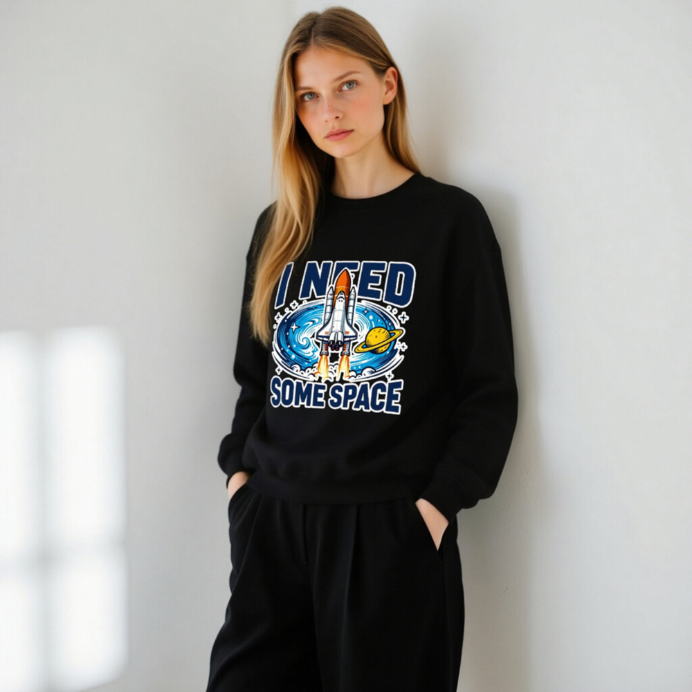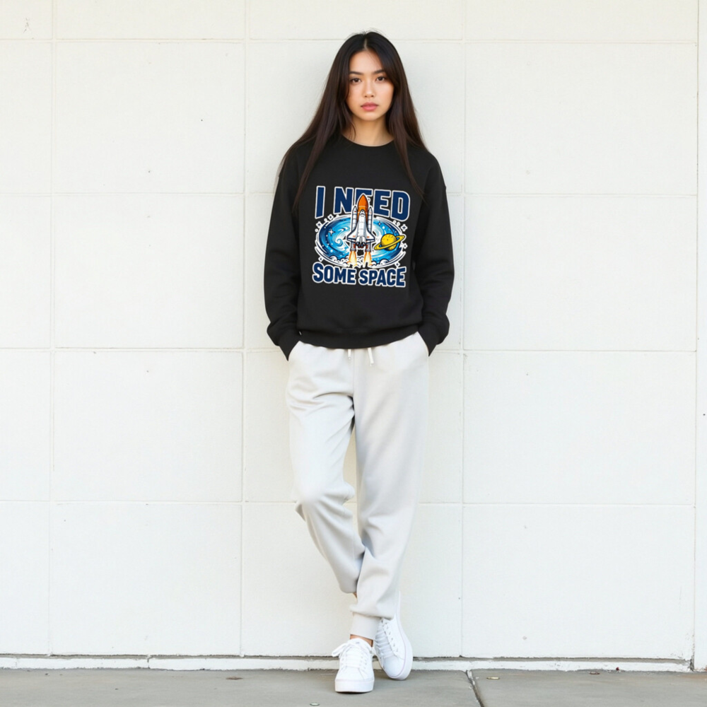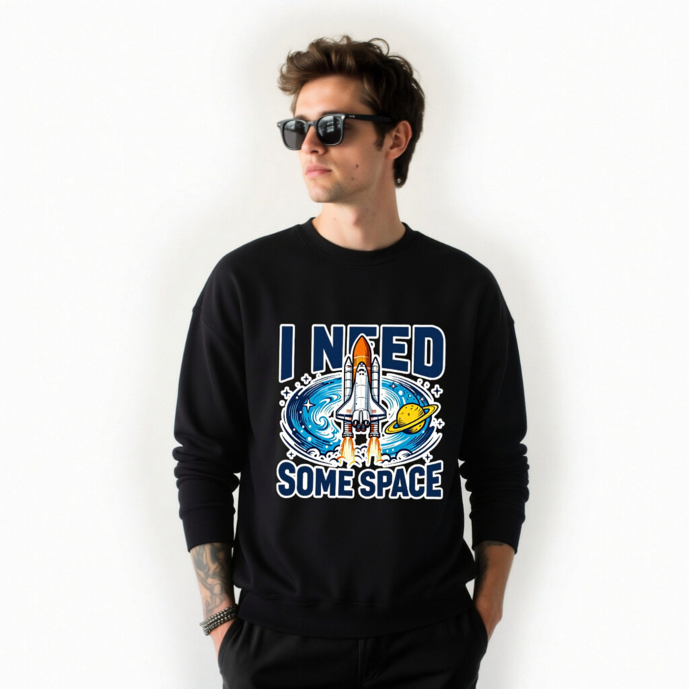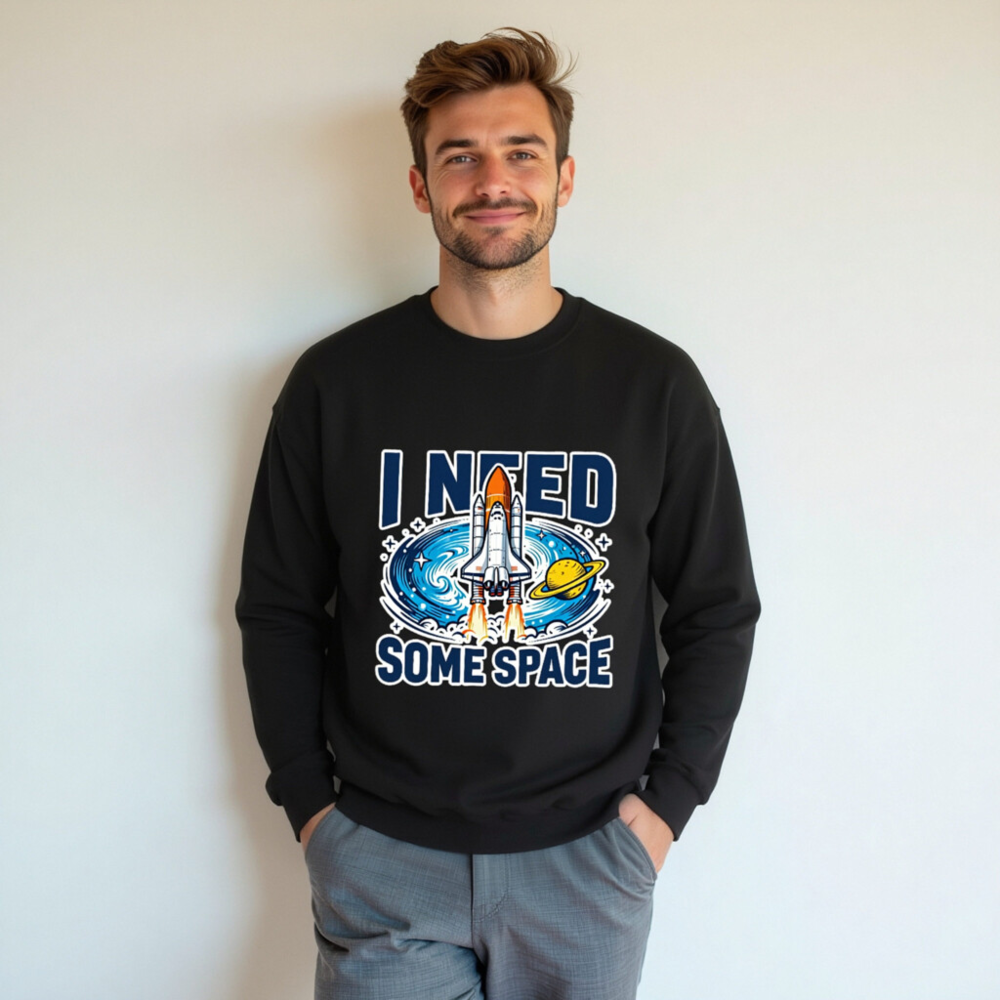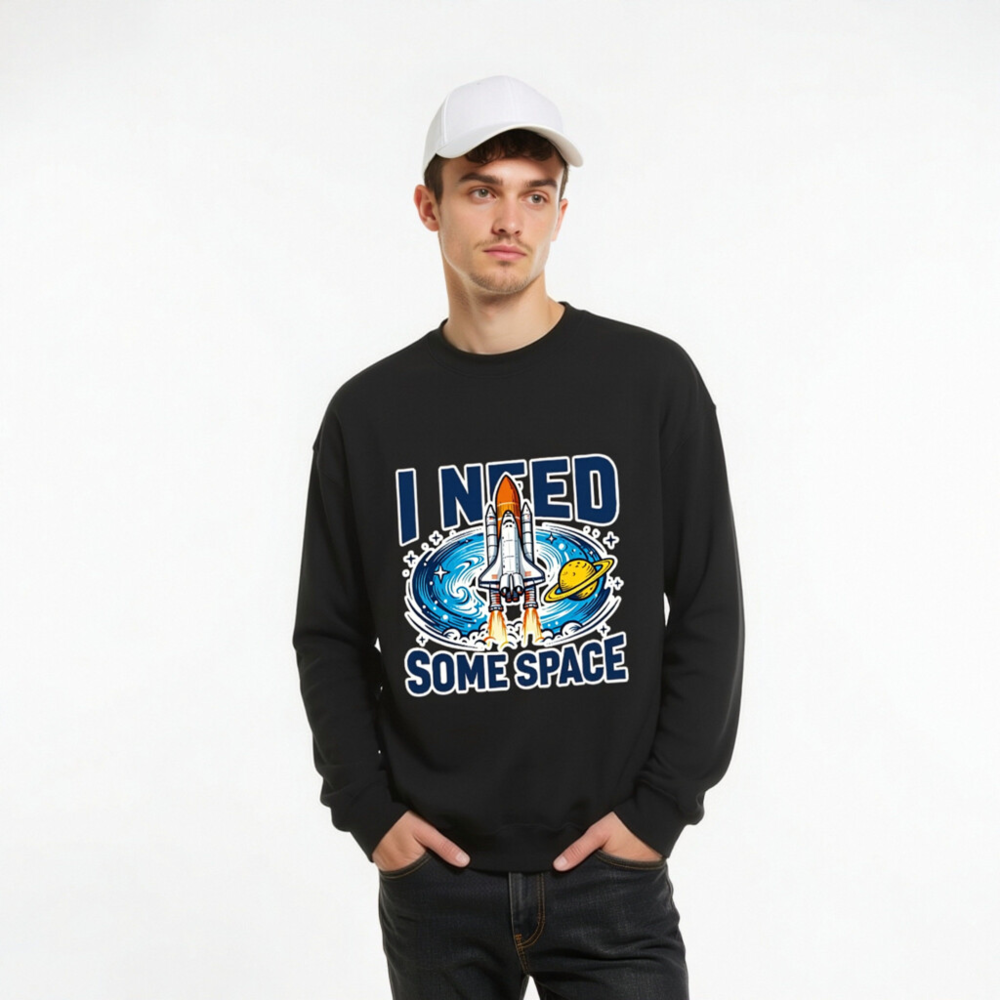 Unisex Crew Neck Sweatshirt | I Need Some Space Space Shuttle Graphic – Black
