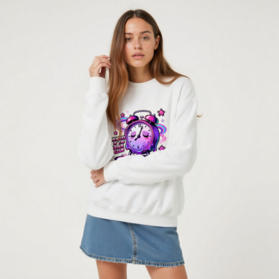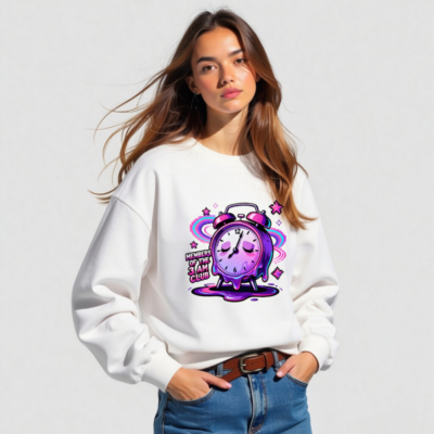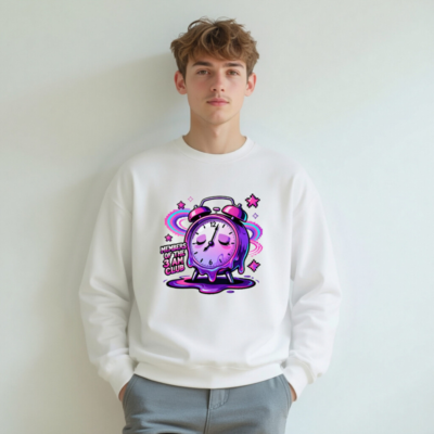 Wear the ‘Members of the 3 AM Club’ vibe with this unisex crew neck sweatshirt featuring a vibrant, melting alarm clock design in purple and pink glitch art style. Perfect for night owls and dreamers—soft, comfortable, and bold. Ideal for casual wear or as a statement piece for early risers who embrace the late-night energy. Designed for all genders, it pairs effortlessly with jeans or joggers. Let your sleep schedule speak.