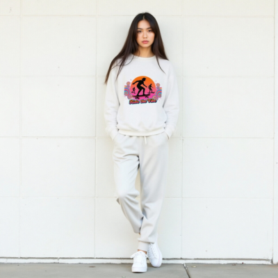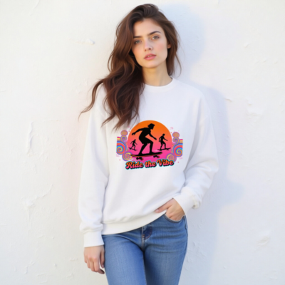 Unisex Crew Neck Sweatshirt | Ride the Vibe Skateboard Graphic – Soft Comfort Fit
